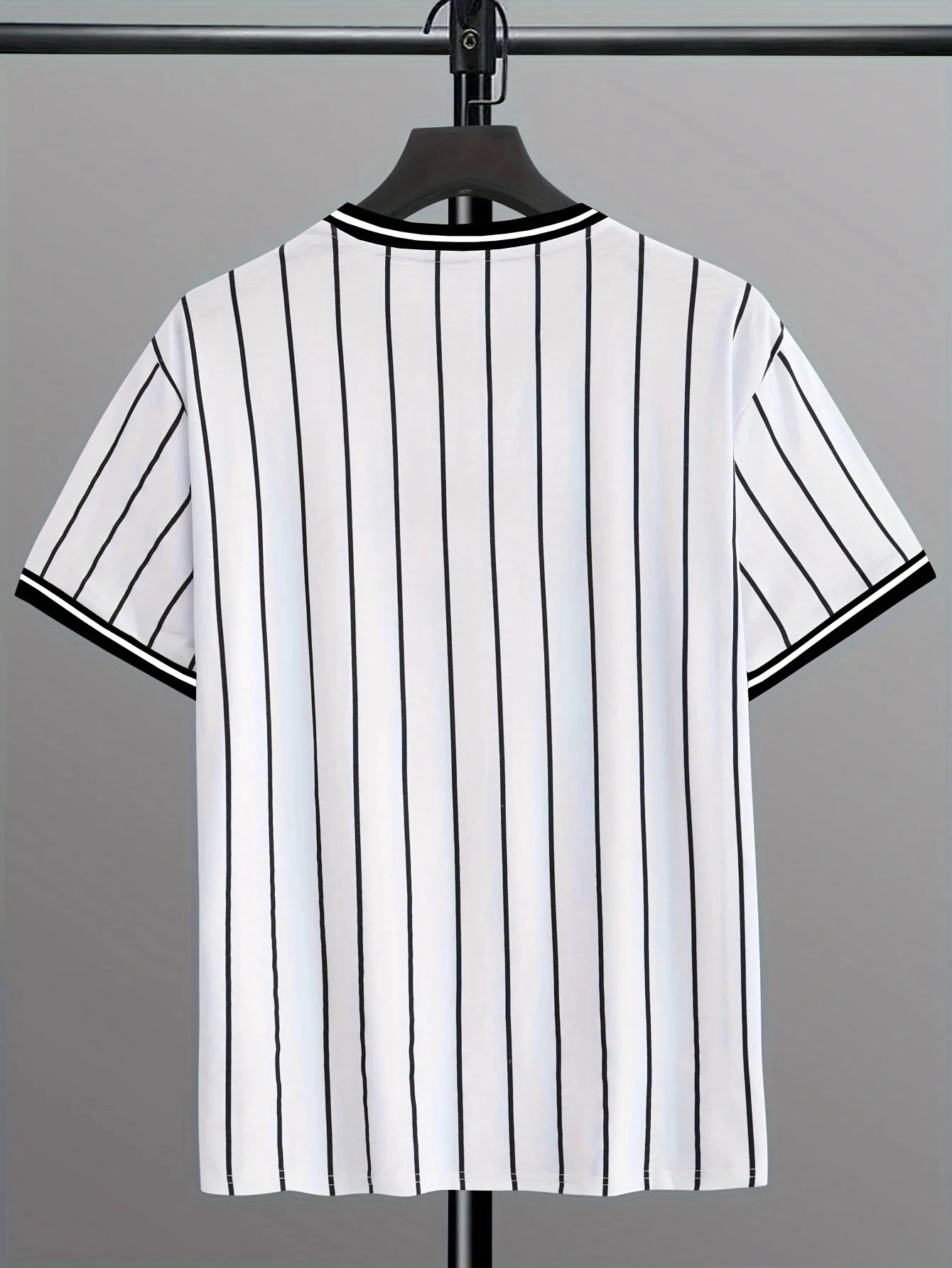 New Men's T-Shirt Los Angeles Printed Striped T-shirt Men's Casual Street Style Stretch Round Neck Tee Oversized Men Clothes Top