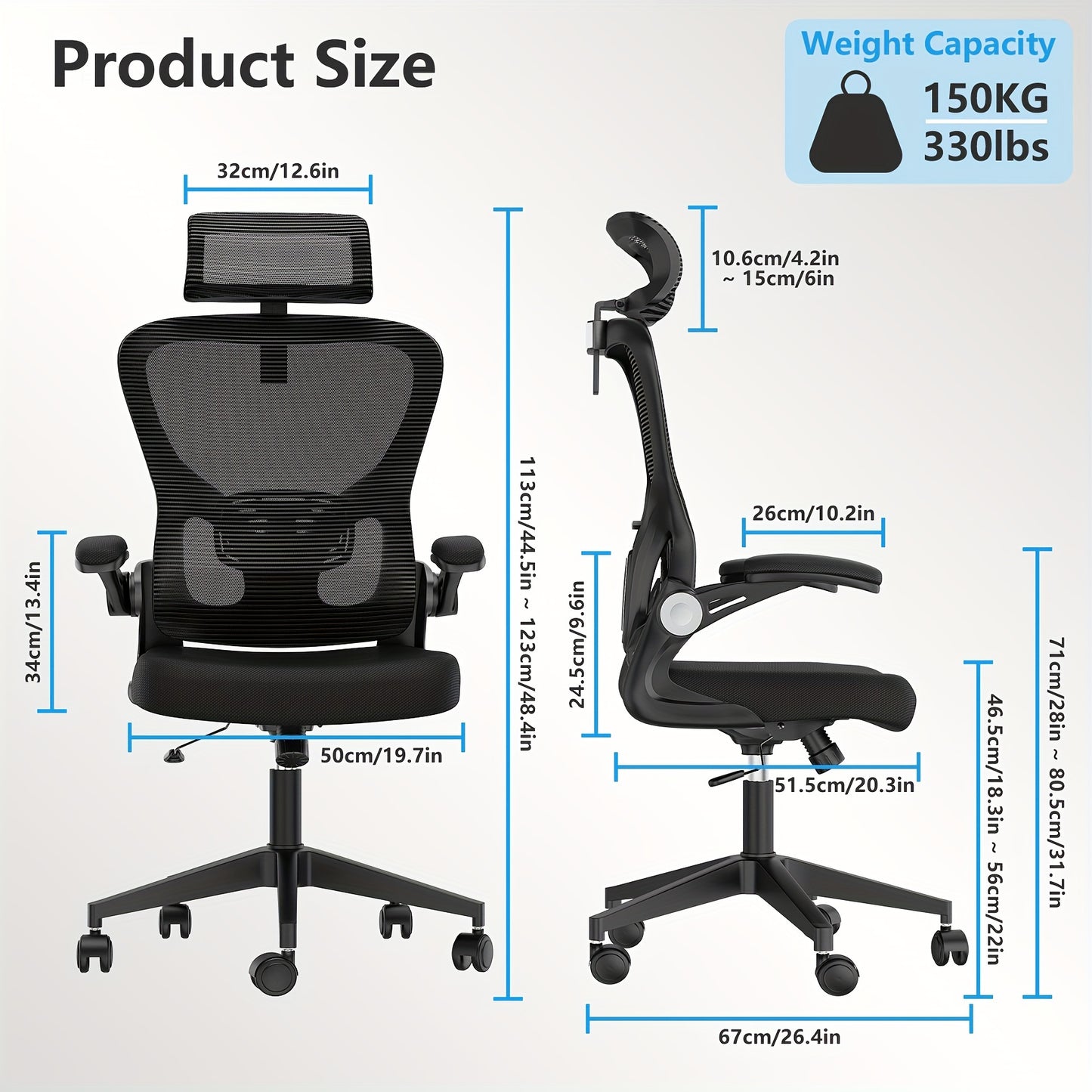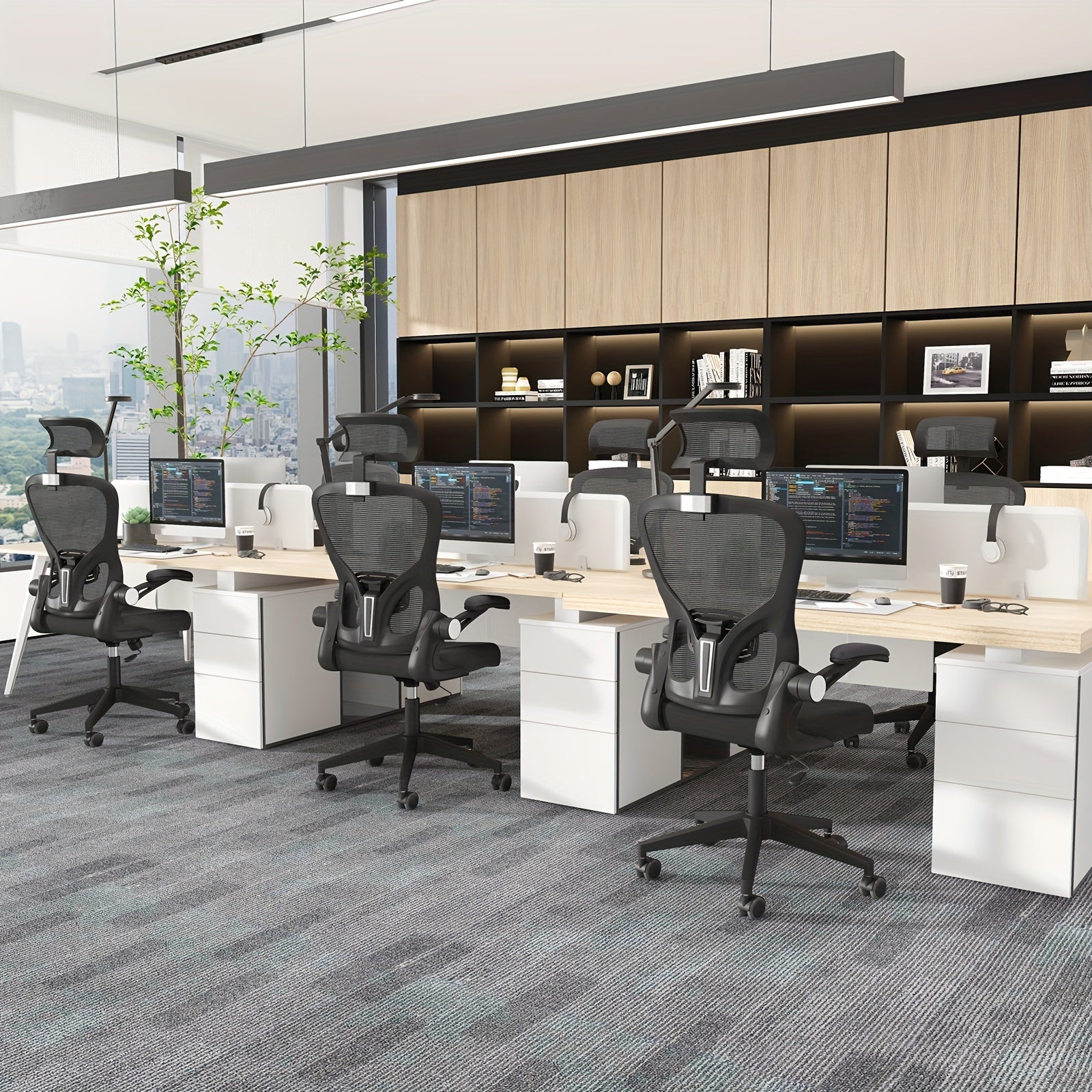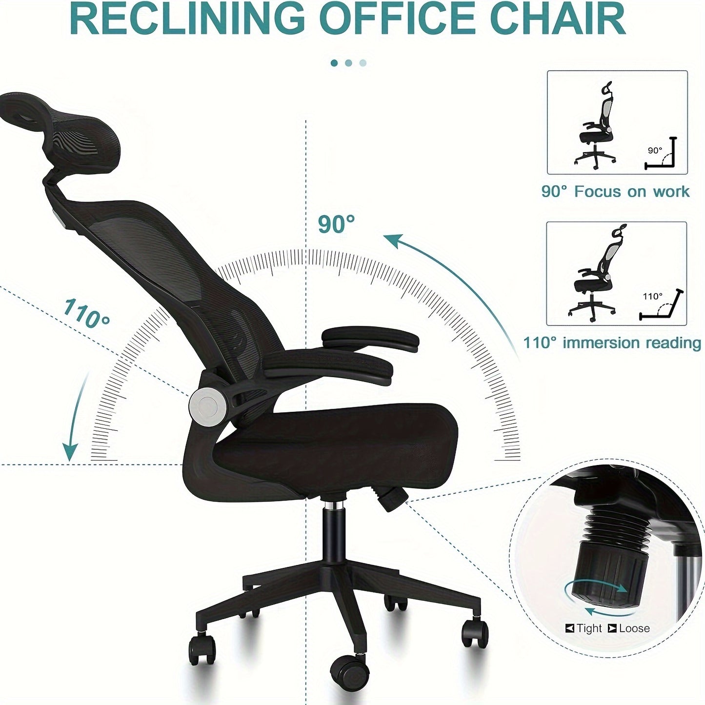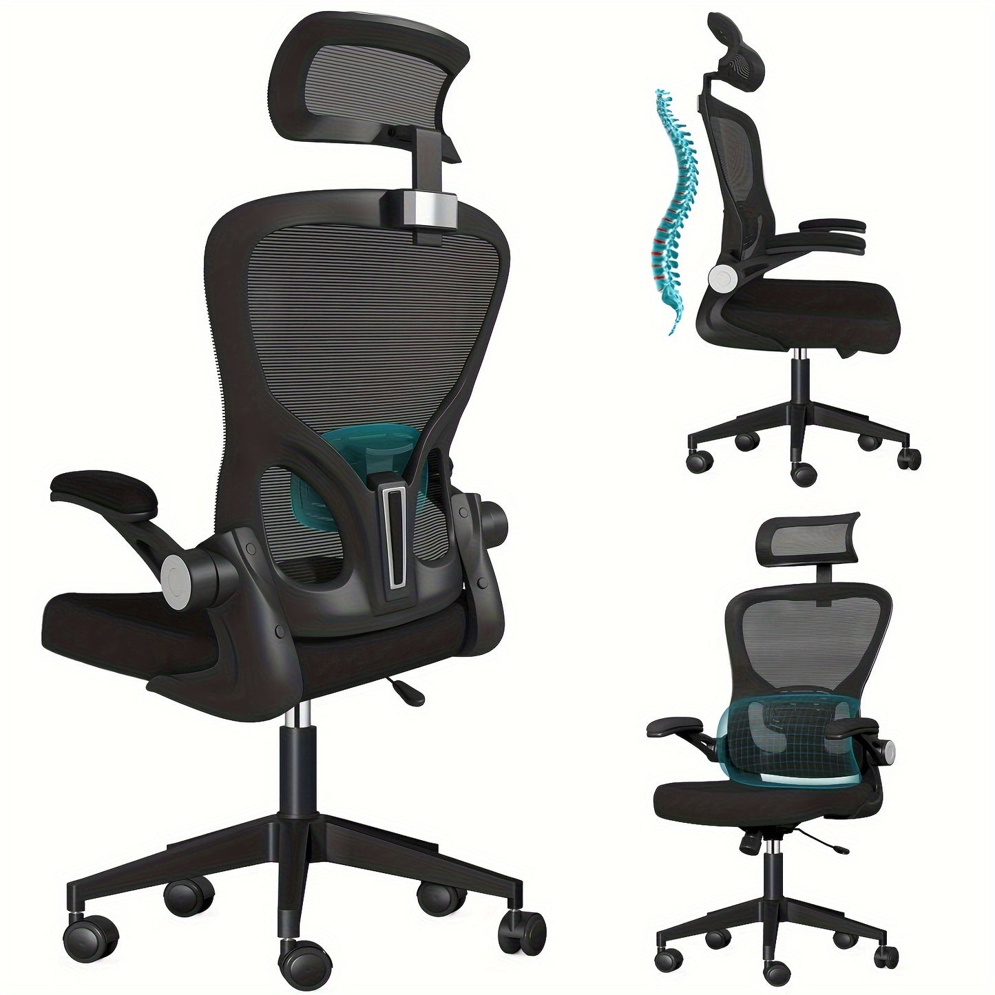 Ergonomic Black Office Chair with Adjustable Lumbar Support, 360° Swivel & 90° Flip-Up Armrest - Steel Alloy Frame, Memory Foam Seat, Headrest, Wingback Design - Perfect for Home Office, Workspace, or Bedroom, Desk Chair
