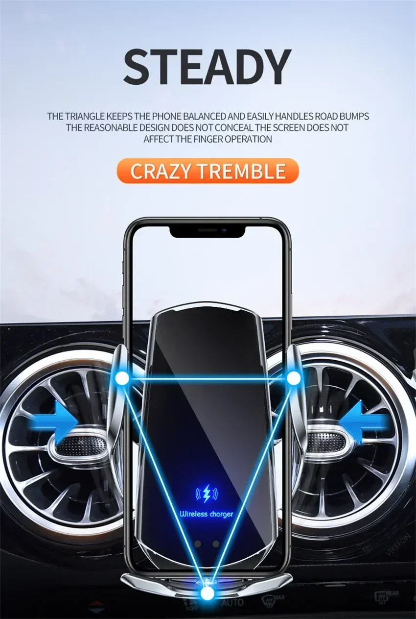 Q3 Smart Sensor Car Phone Wireless Charger 15W Fast Charging Auto-Clamping Car Phone Holder for iPhone and All Qi Enable Android