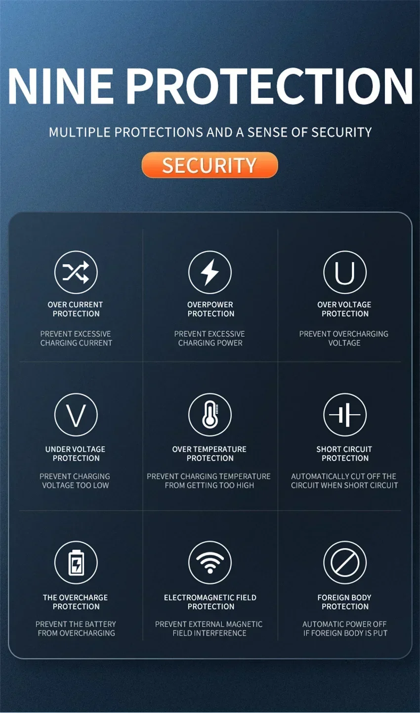 Charging power: 30W/20W/15W/10W / 7.5W / 5W (30W max will be faster than others wireless charger)