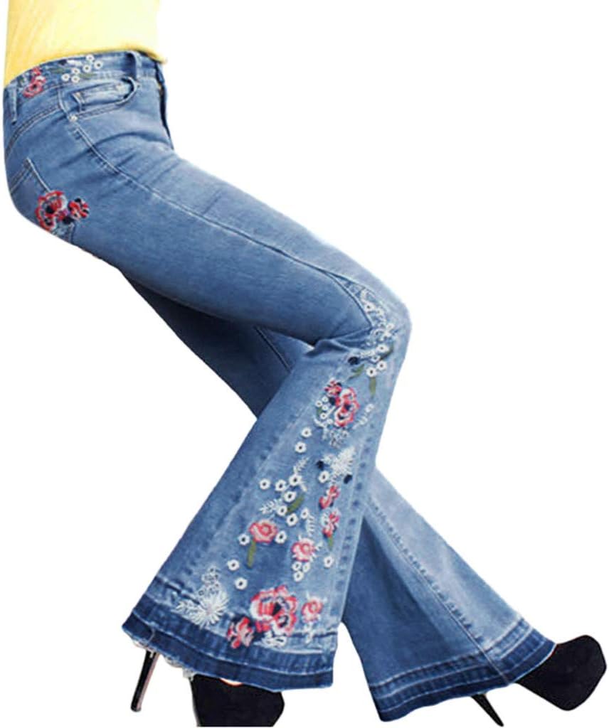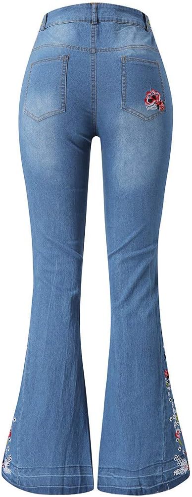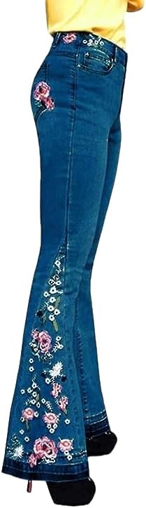 QIANLAIA Slim Fit Flared Pant Floral Embroidery High Waisted Pants Vintage Y2k Loose Denim Trousers