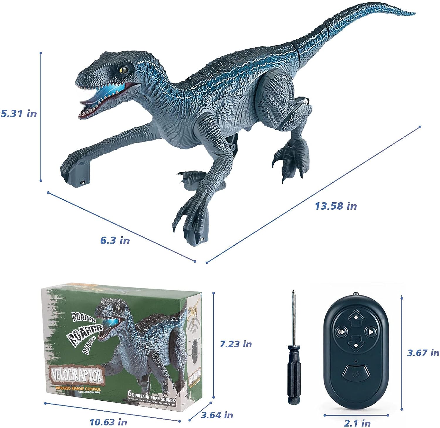 - 【Warm Tips】The size of this dinosaur toy is 13.45*6.4*5.3inch. 4PCS .5V AAA non-rechargeable batteries are required in dinosaur toy. 2PCS 1.5V AAA non-rechargeable batteries are required in transmitter. (Batteries Not Included).