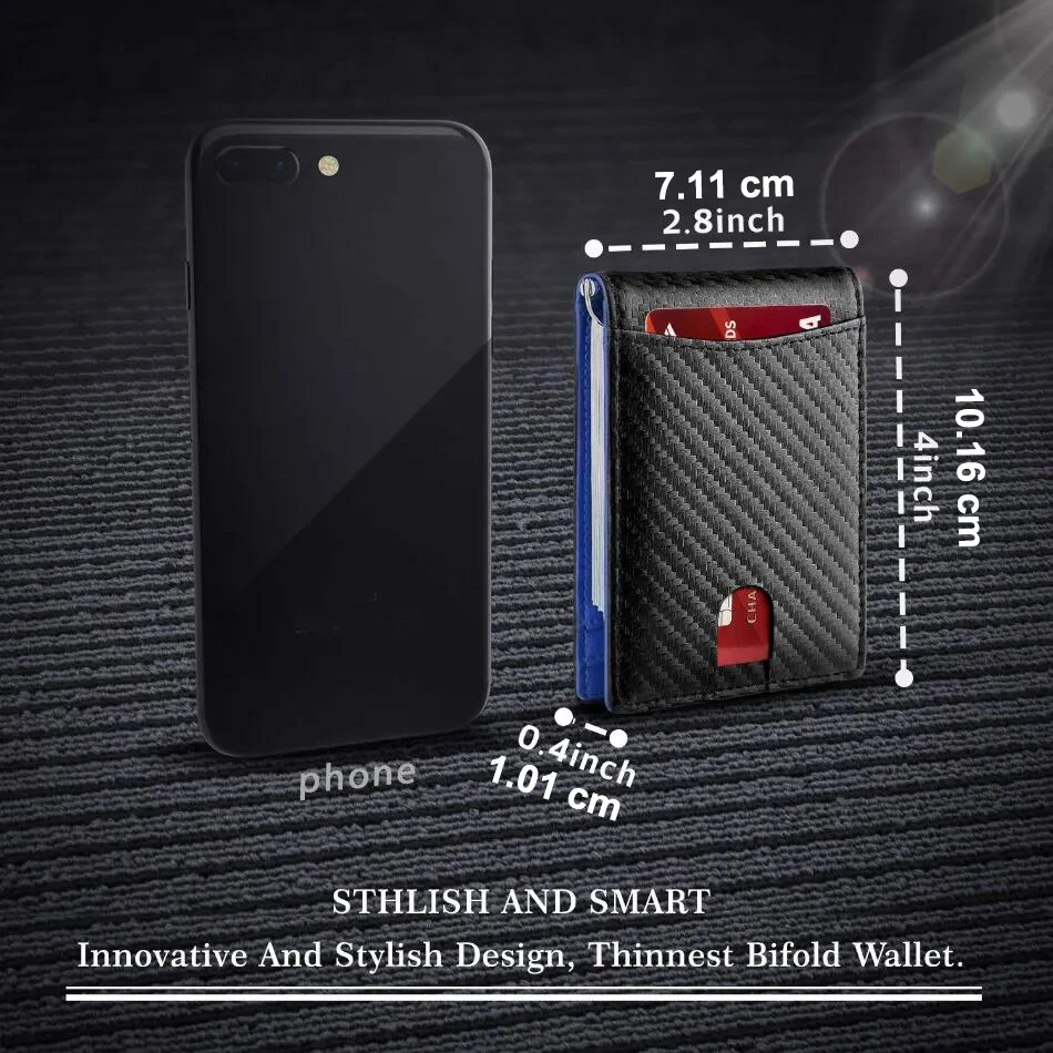 • Carbon Fiber Material :Crafted from microfiber synthetic leather and carbon fiber, this wallet offers a sleek, modern look while ensuring durability and longevity.