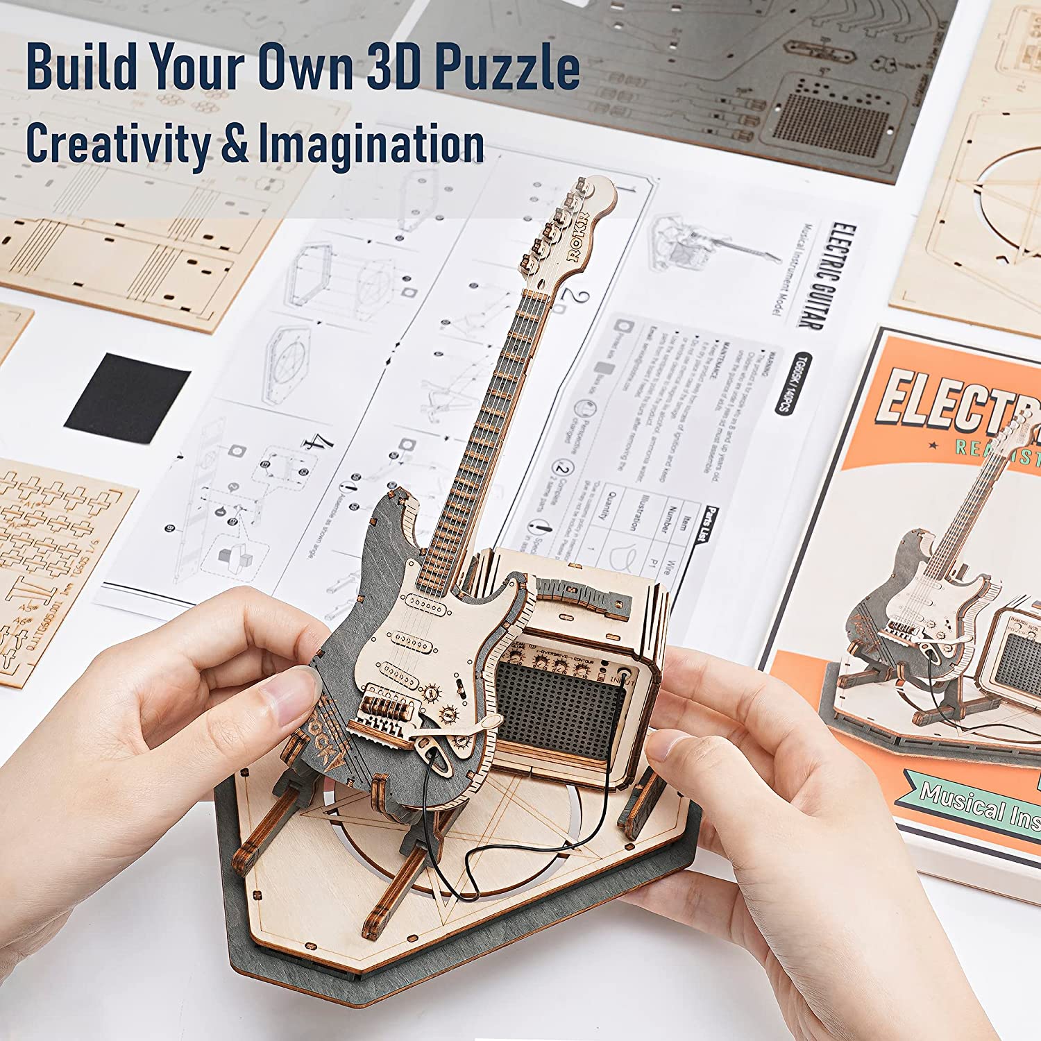 Robotime ROKR Electric Guitar Model Gift For Kids Assembly Creative Toys Building Block Set 3D Wooden Puzzle - TG605K