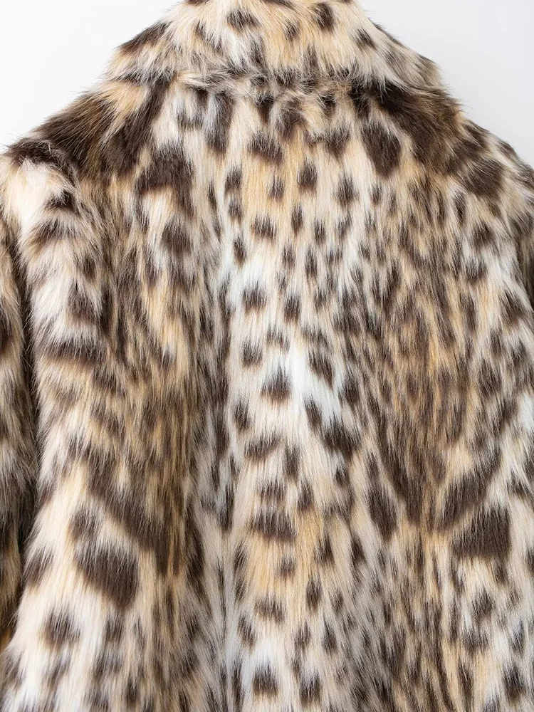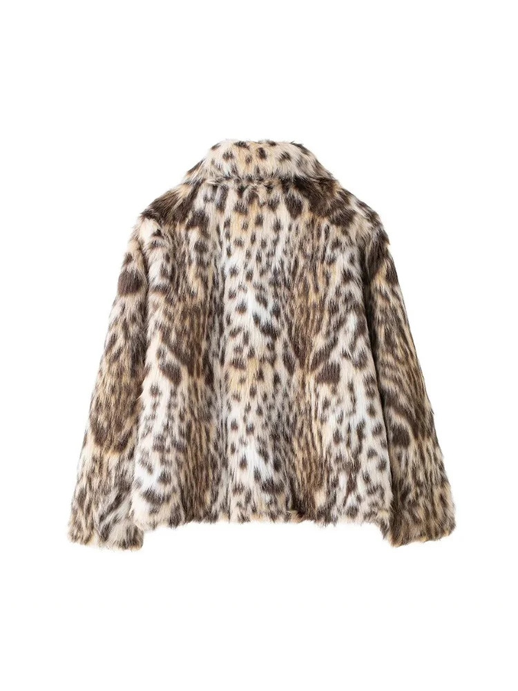 Women Winter Warm Faux Fur Jacket Female Buttons Pockets Turn-down Collar Coat Ladies Fluffy Outerwear