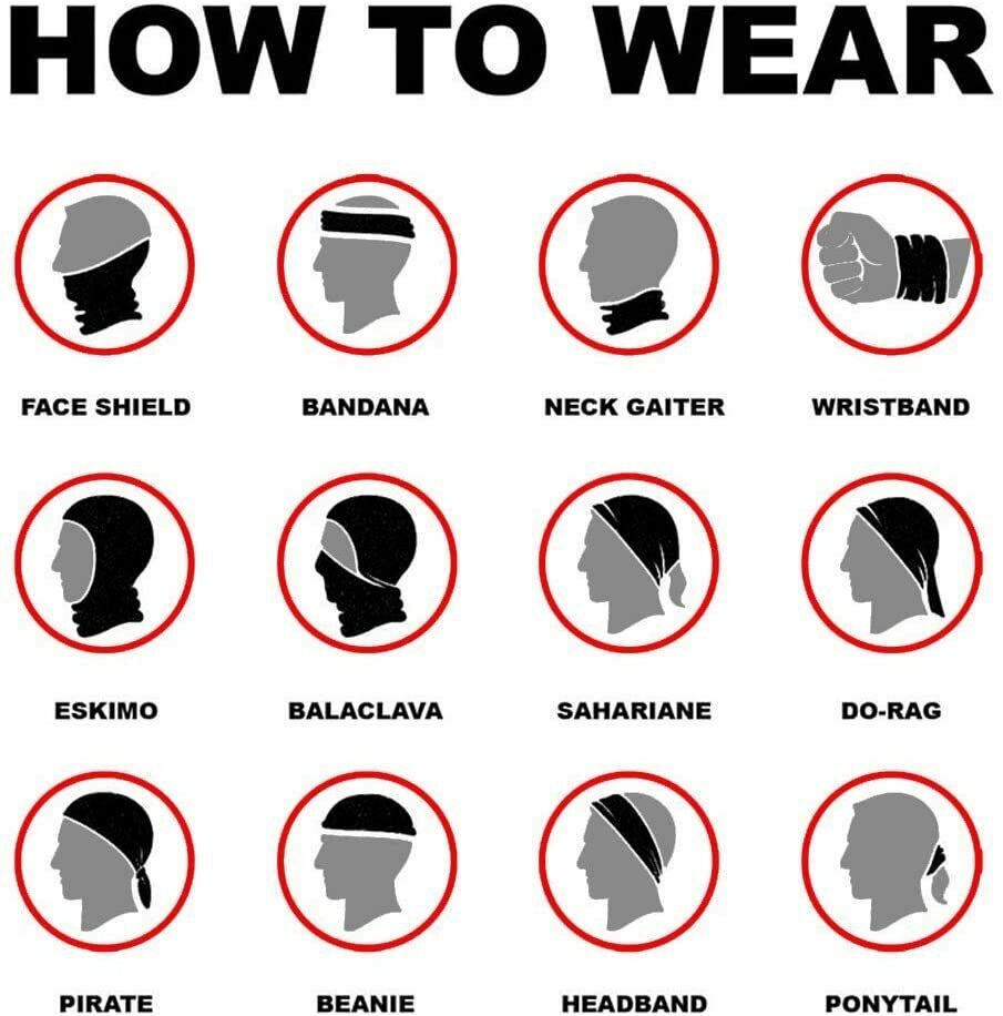MULTIFUNCTIONAL: A bandana, scarf, beanie, headband, wristband, helmet-liner, muffler, neck gaiter, dust screen or hair band, what ever you like. You can even invent your own style.