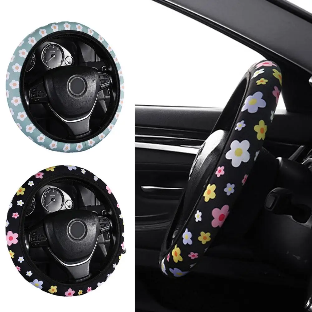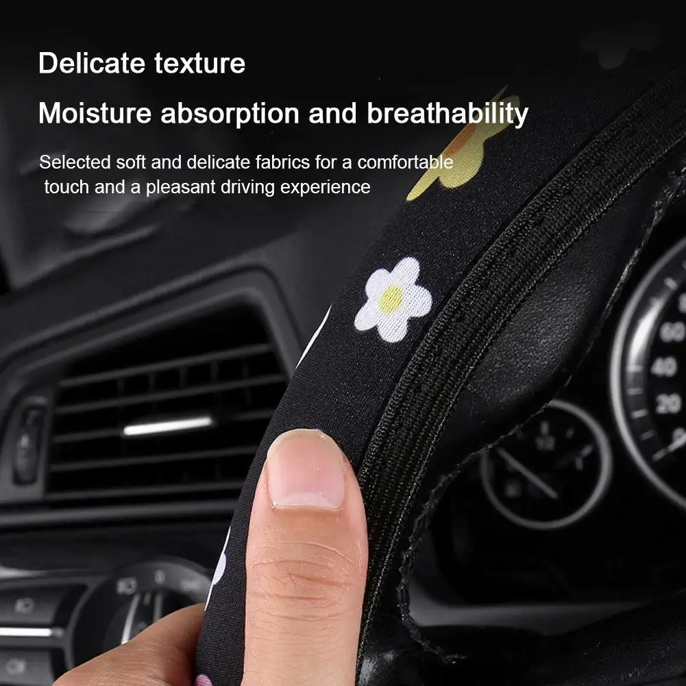 Small Fresh Flower Elastic No Inner General Purpose Car Steering Wheel Cover Breathable And Absorbent Handle Cover