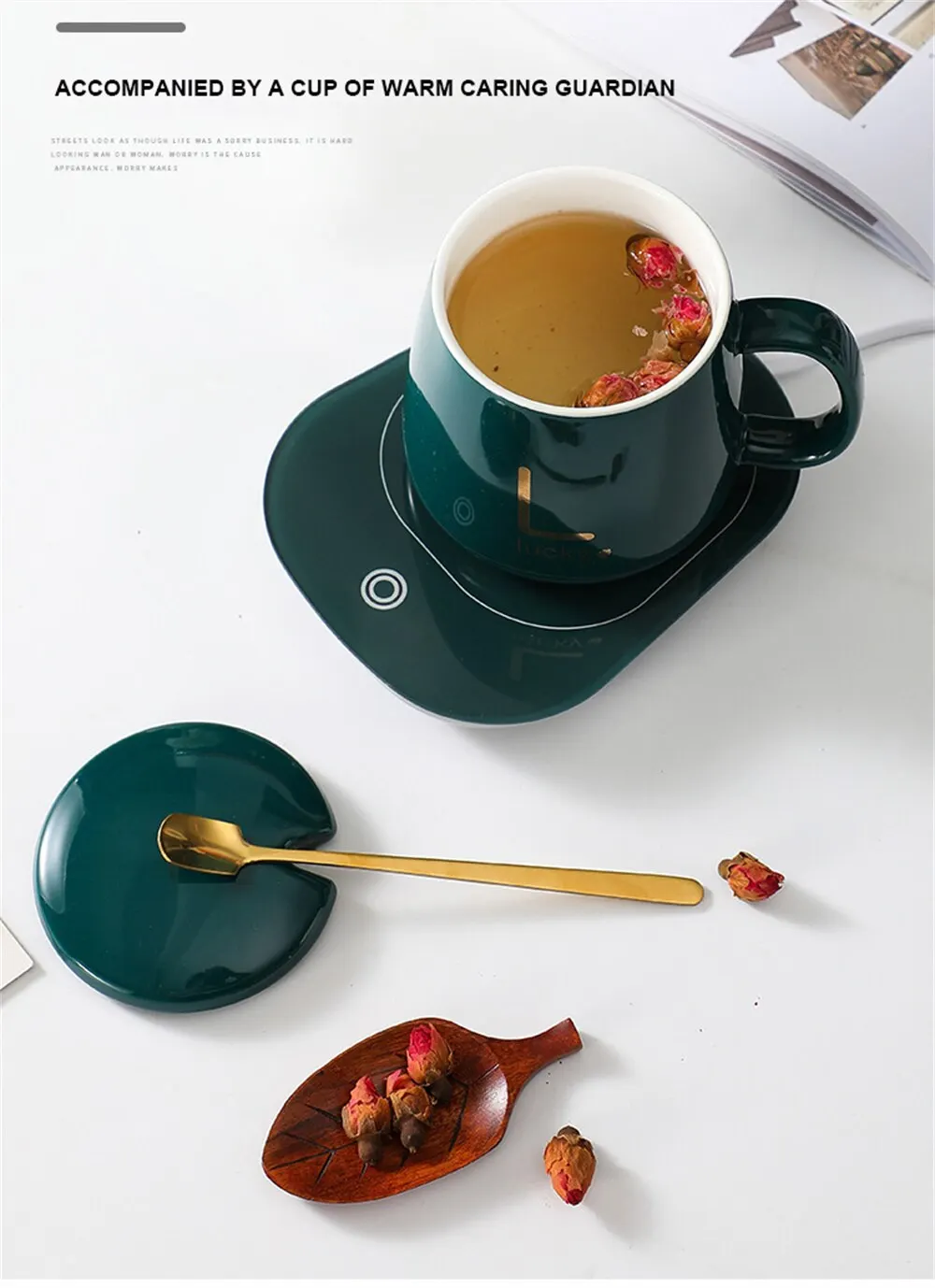 Smart Ceramic Mug Heater Cup Coaster Warmer Thermostatic Coffee Heating Electric Mug Set Milk Tea Heating Water Home Office Gift