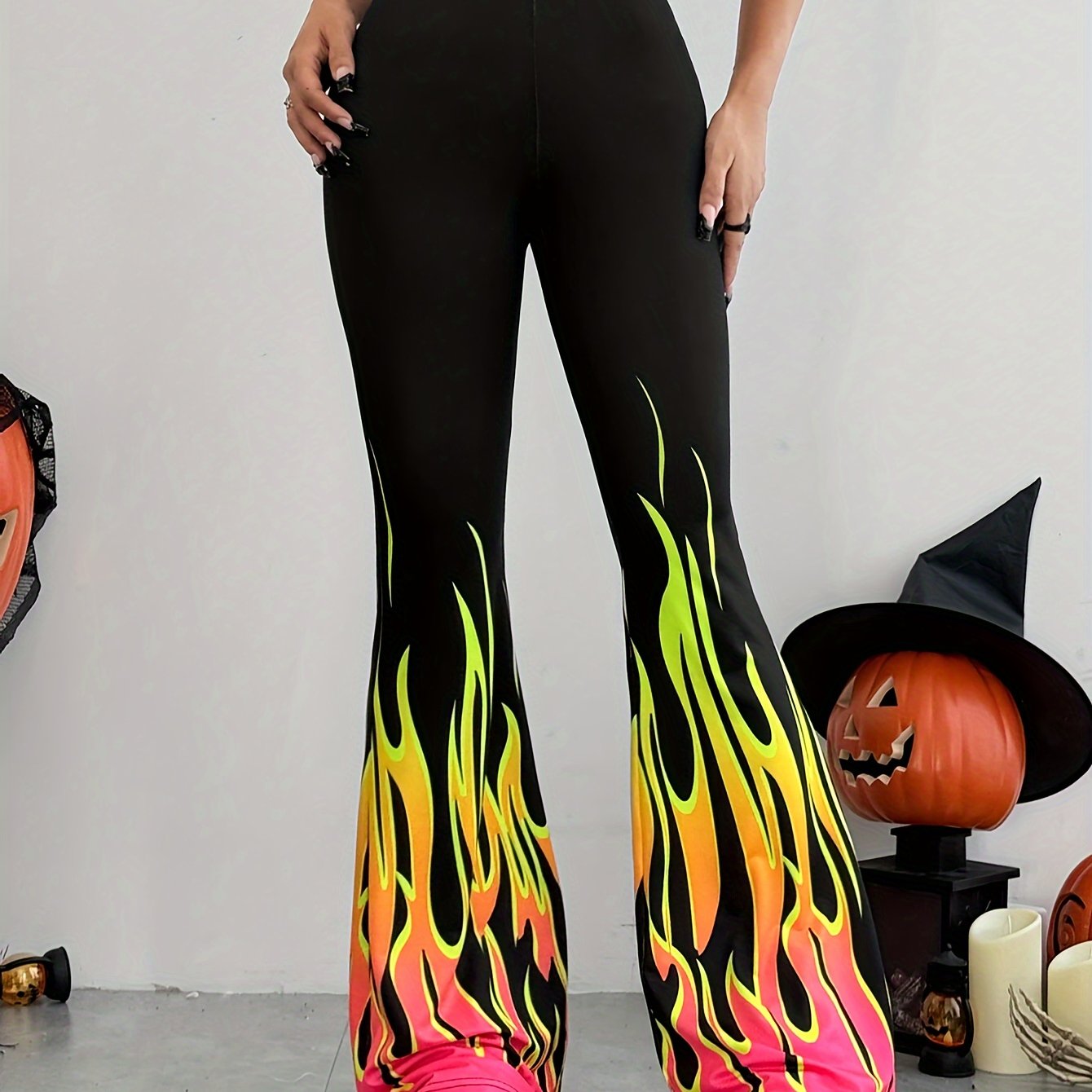 Crafted from polyester with 5% elastane, these stretchy knit bell bottom pants offer a comfortable mid-level stretch and a flattering skinny fit. Featuring a unique printed pattern and designed for casual wear, they are suitable for all seasons. Easy to maintain, these machine-washable pants require no dry cleaning, making them a practical and stylish addition to your wardrobe.