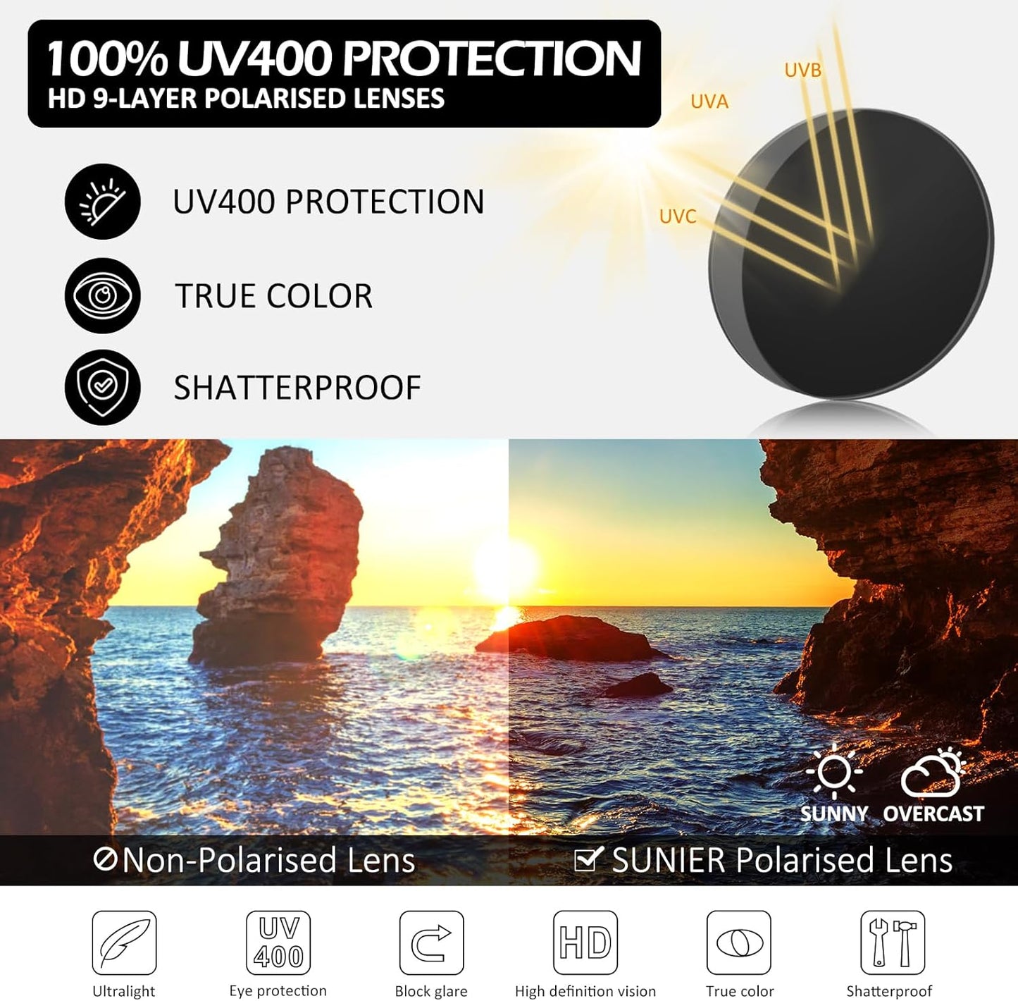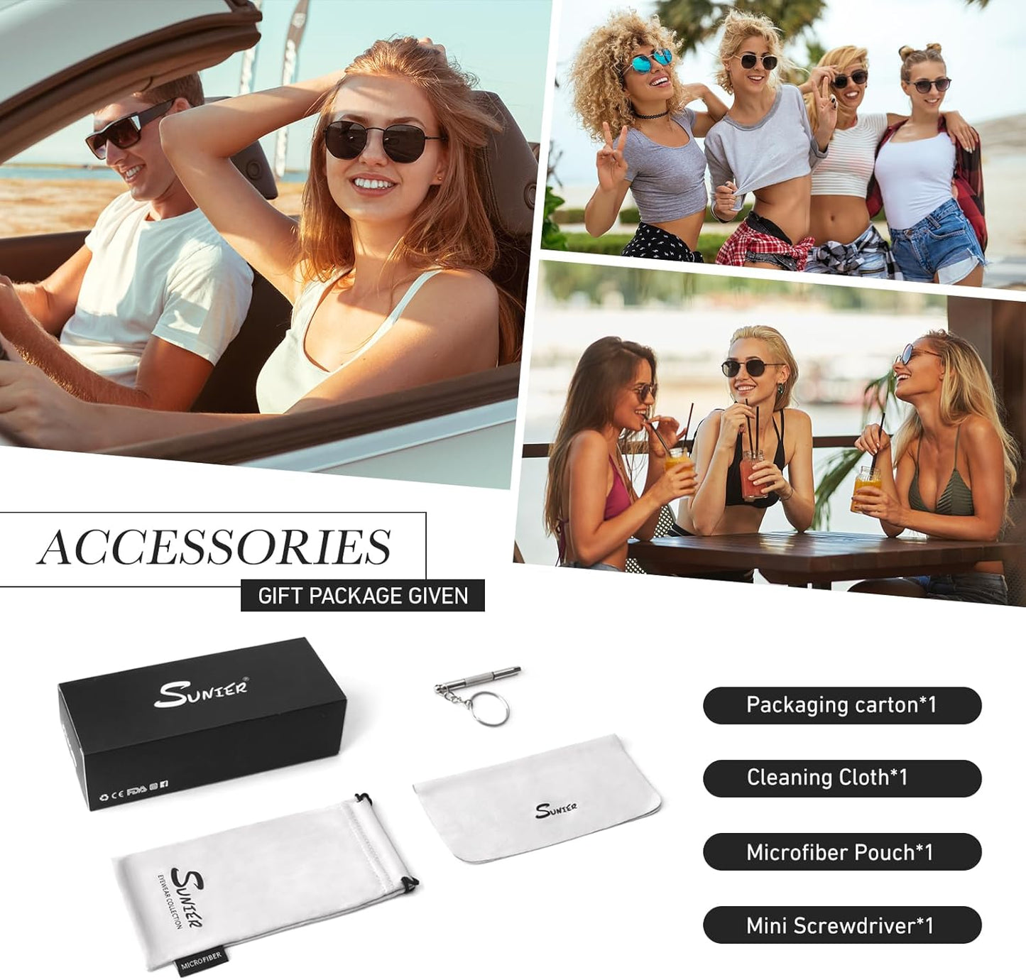 Sunier Polarised Sunglasses Women Men, Trendy Square Womens Shades,