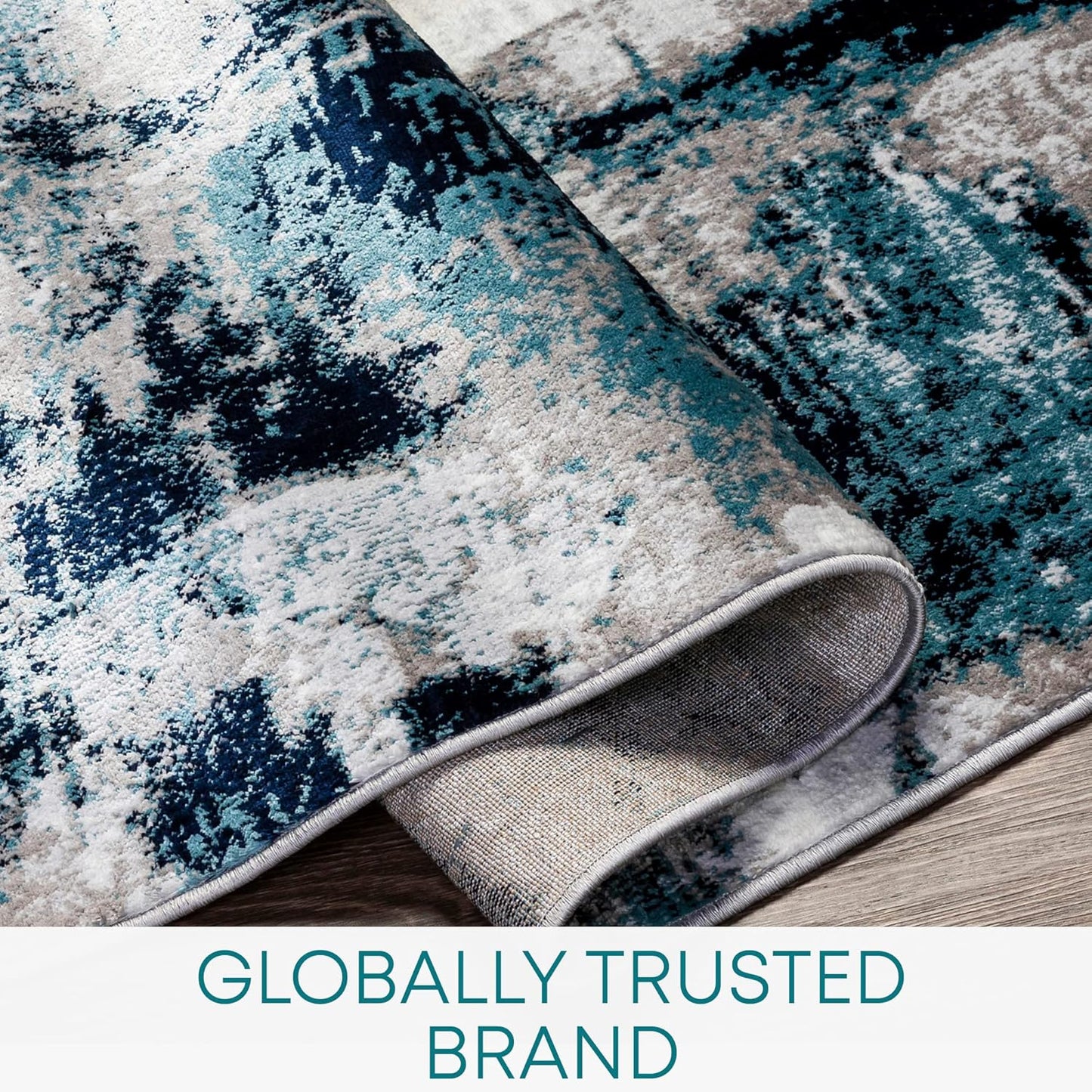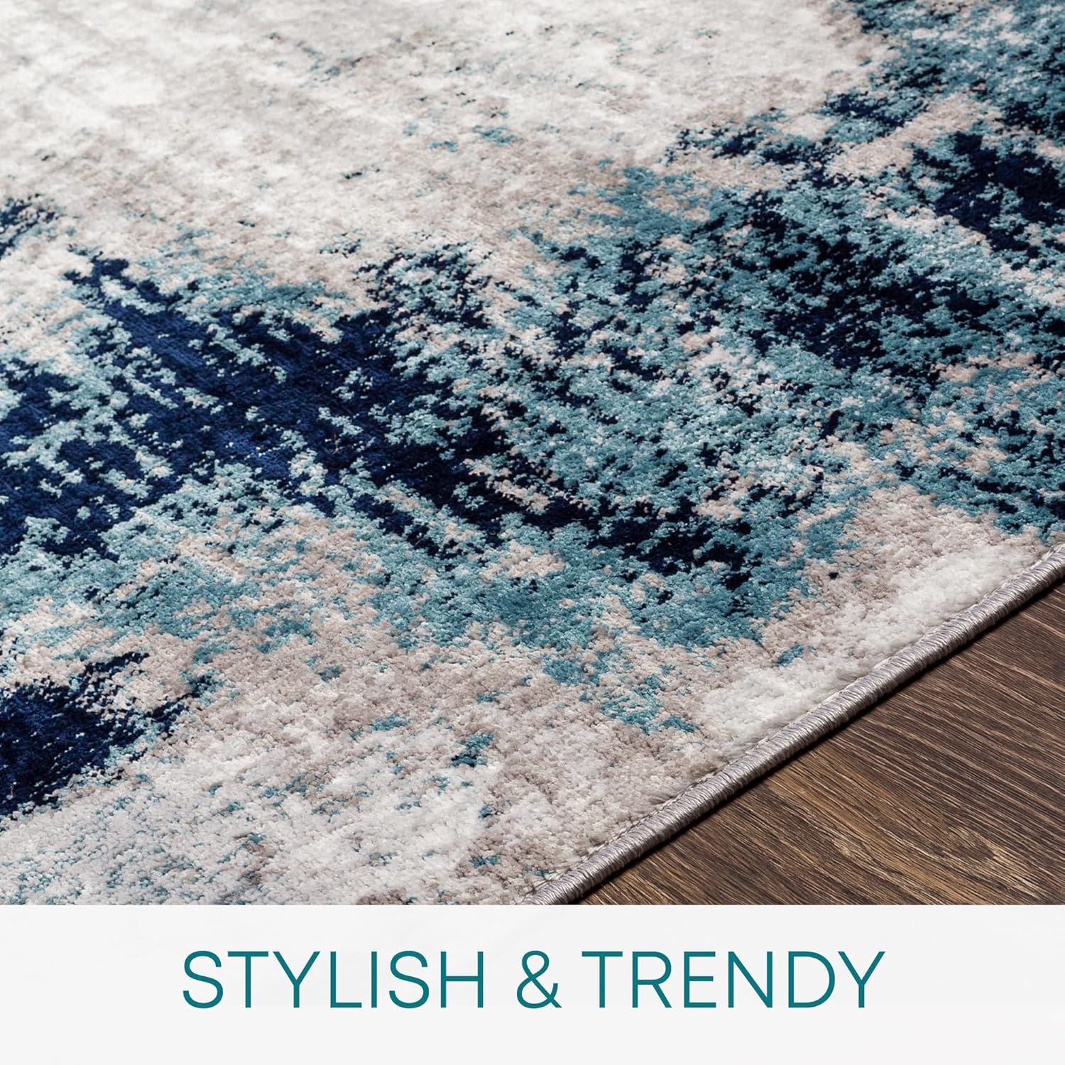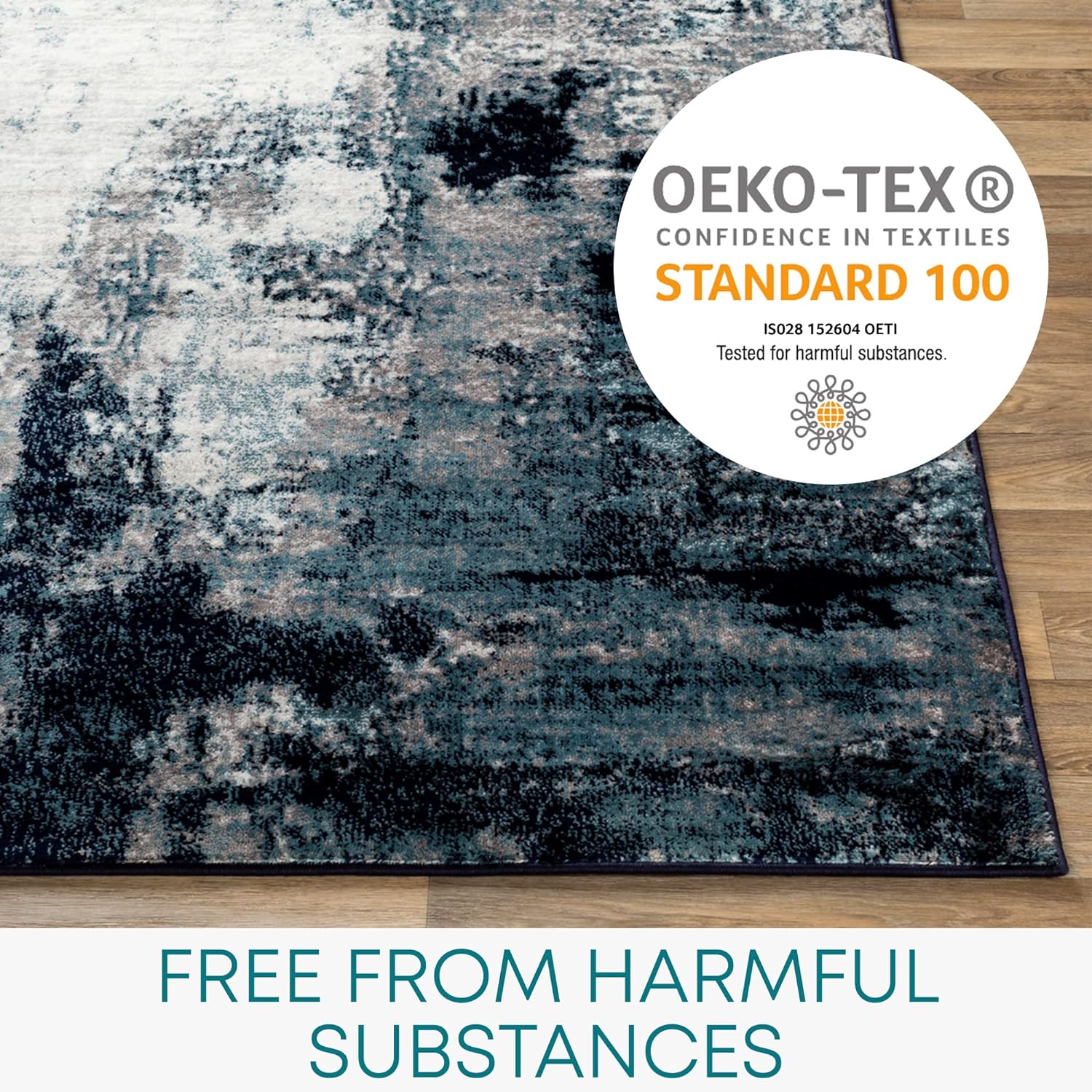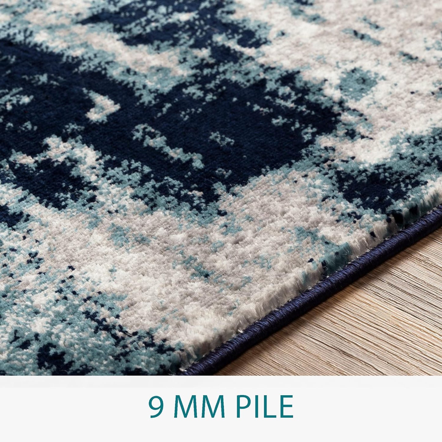 Surya Helsinki Abstract Rug - Area Rugs Living Room, Dining, Lounge, Bedside - Modern Marble Rug, Soft Luxurious Easy Care Medium Pile - Large Rug 160x220cm Navy BLue Rug