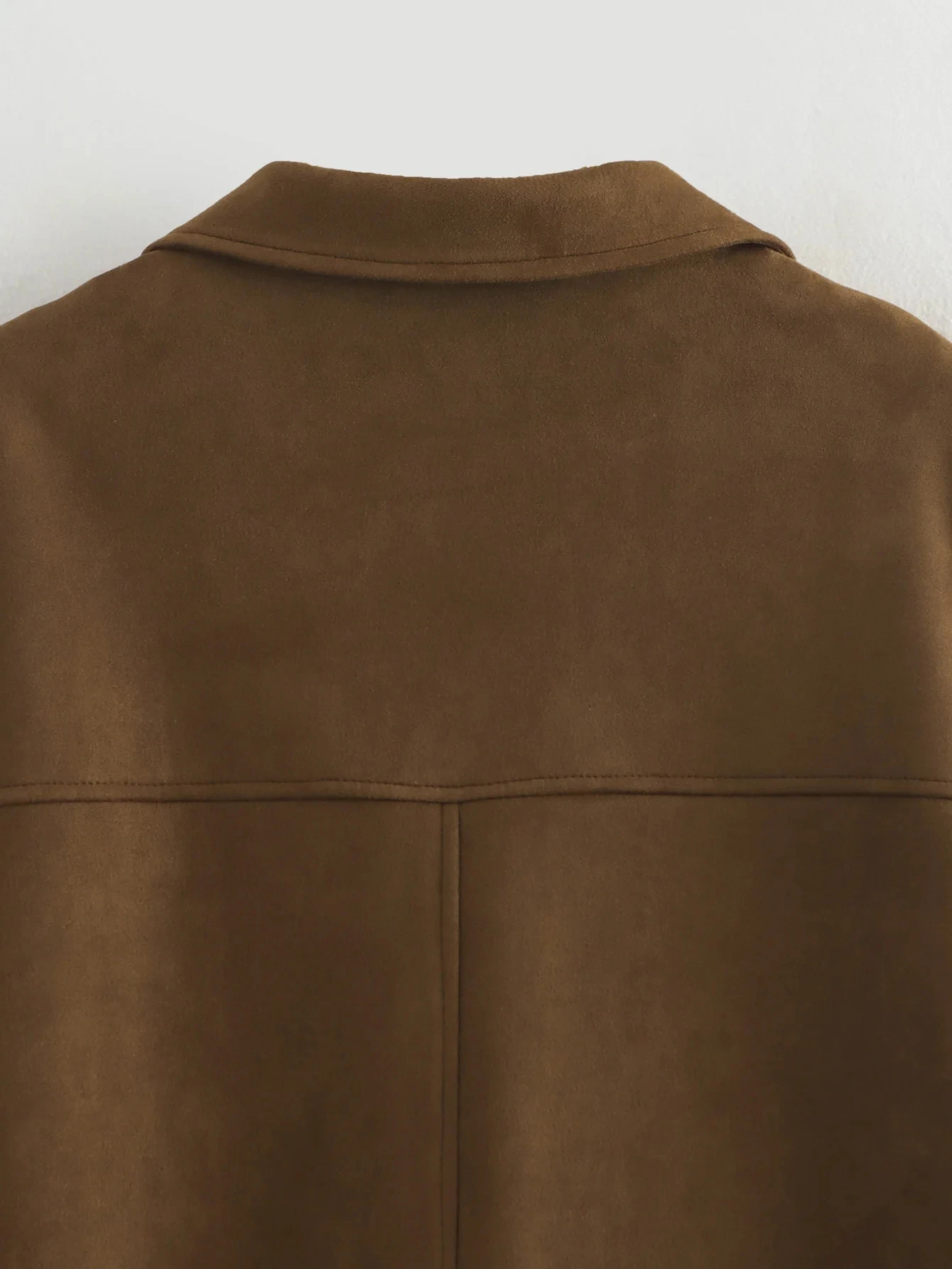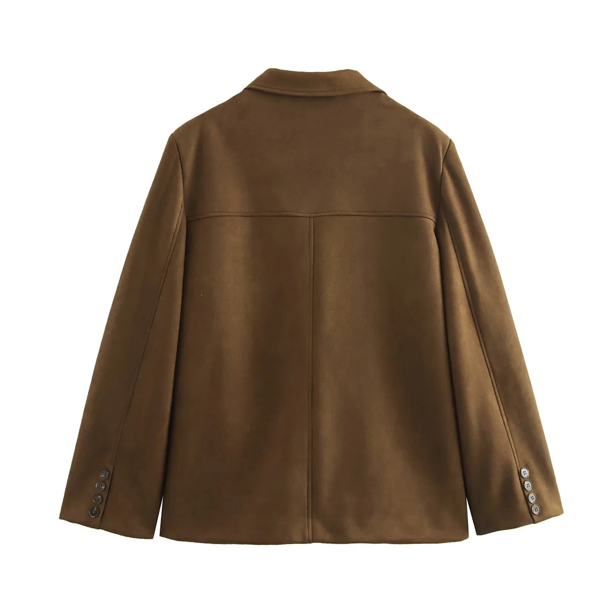 TRAFZA Autumn Women Vintage Faux Suede Blazer Coat Fashion Lapel Single Breasted Long Sleeve Jacket Casual Office Lady Outerwear