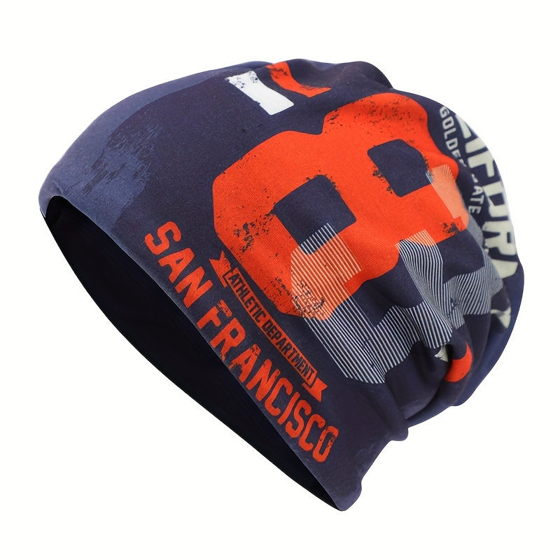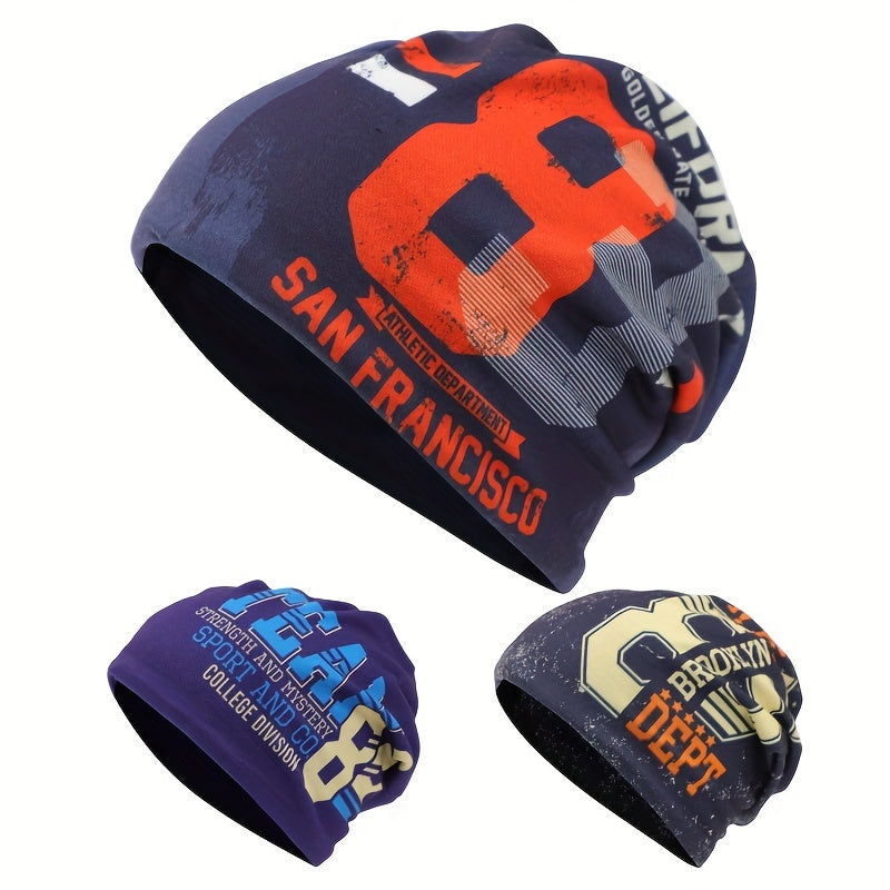 Trendy Letter Print Slouchy Beanie Double Layer Skull Cap Lightweight Elastic Beanies Chemo Cap For Women Girls