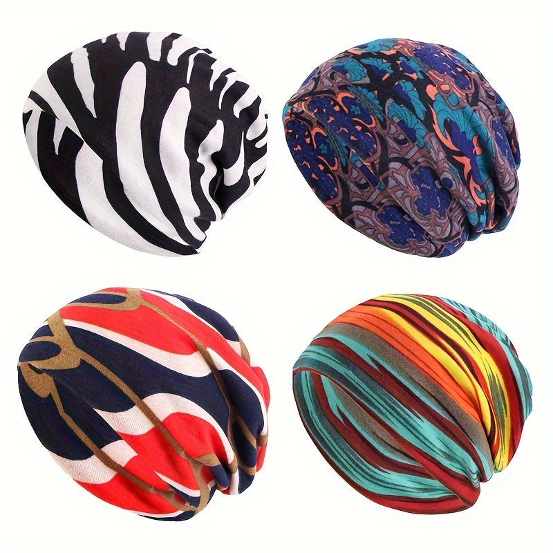 Trendy Printed Slouchy Beanie Elastic Skull Cap Lightweight Beanies Warm Chemo Cap For Women Men