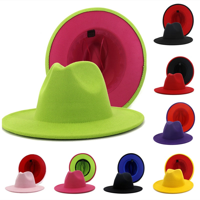 Two-color Patchwork Felt Hat Women Men Wide Brim Wool Jazz Fedora Hats Panama Trilby Cap Trend Gambler Hat Wholesale