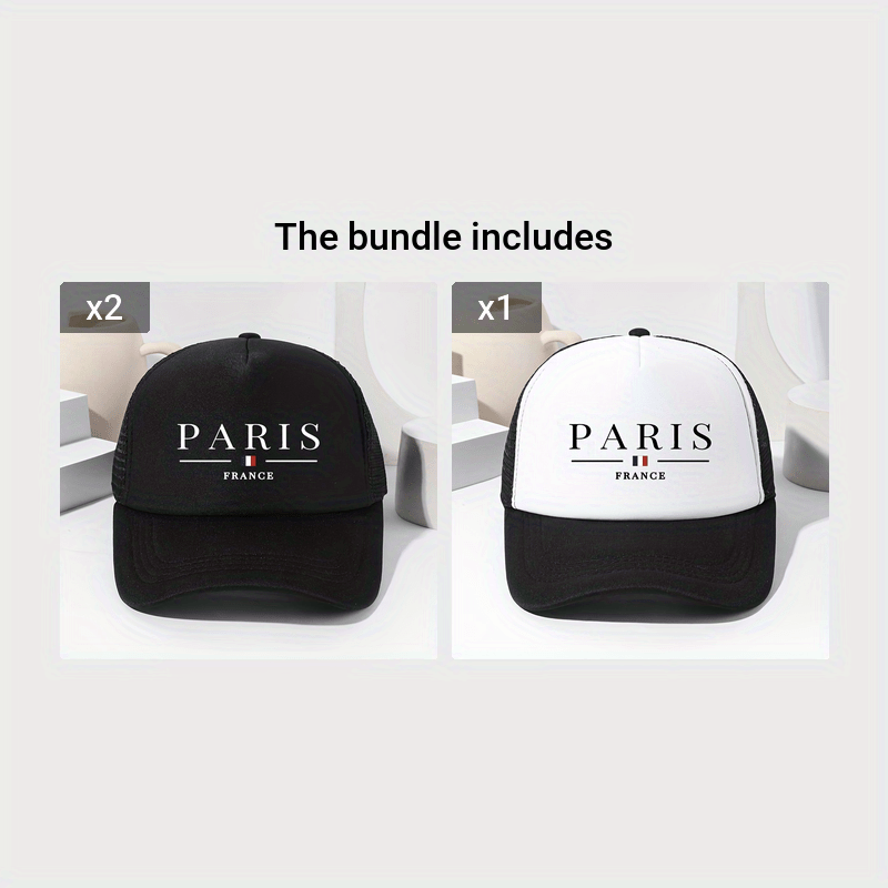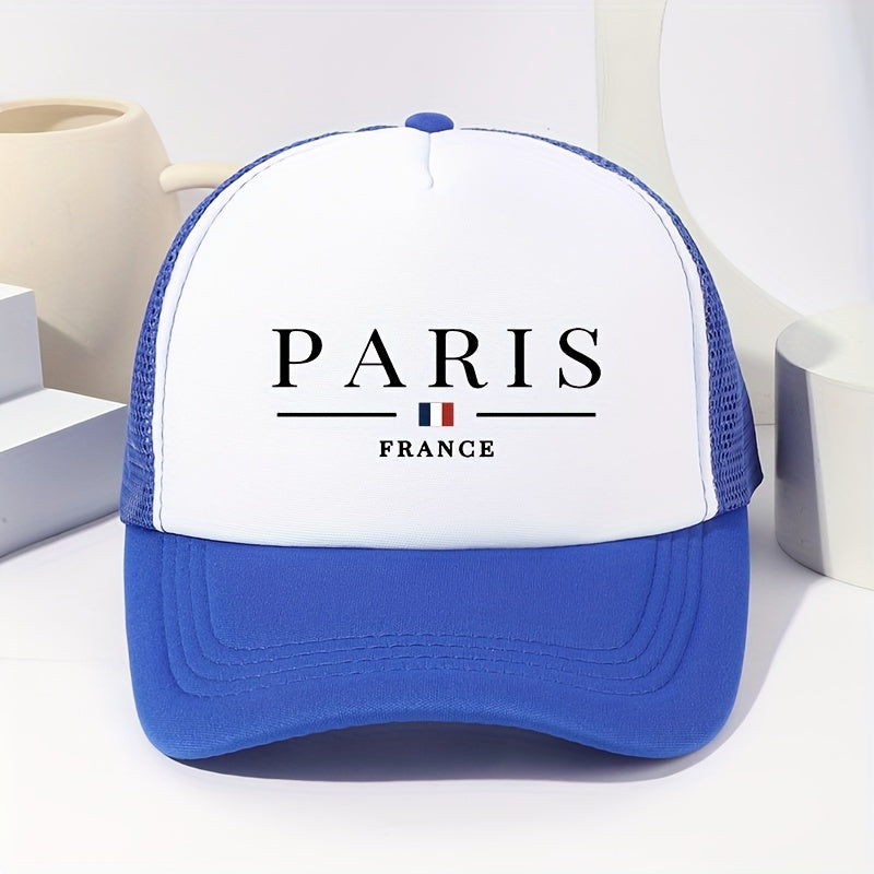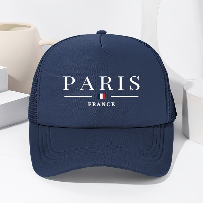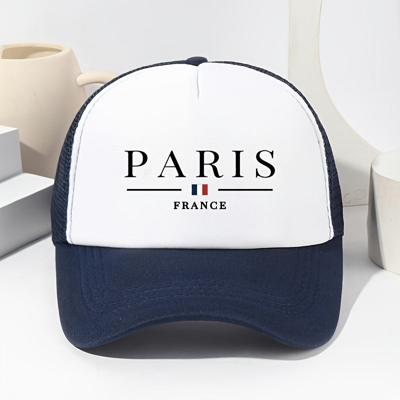 Unisex Paris Print Mesh Baseball Cap, Adjustable Summer Sun Protection Trucker Hat, Casual Sunshade Peaked Hat For Outdoor Sports And Fishing