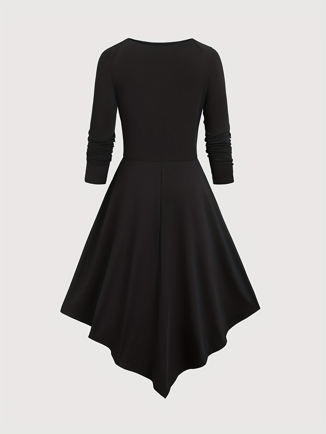 This elegant Women's Gothic Halloween Party Dress is crafted from 100% polyester with a fitted knit design featuring subtle micro elasticity for a comfortable fit. The dress showcases a heart-shaped collar, lace-up details, and an asymmetrical silhouette in striking black and red colorblocks. Perfect for formal events, themed parties, or daily gothic fashion, it includes an adjustable back tie closure for a personalized fit. Easy to care for with machine wash or professional dry cleaning, this dress blends festive style with refined gothic elegance.