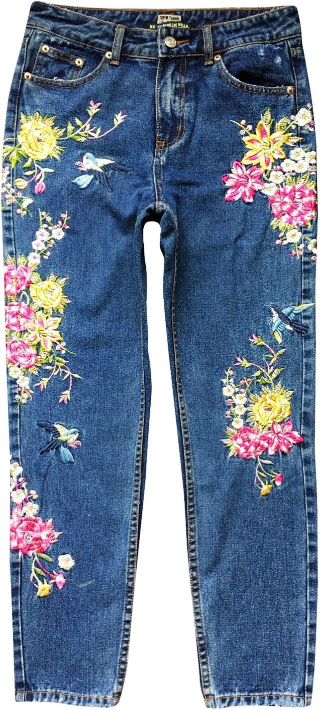 These women's high-waisted embroidery jeans feature a straight-leg, casual boyfriend fit crafted from denim. Ranked 168,985 in Fashion and 424 in Women's Jeans, they offer a stylish and comfortable option for everyday wear. With a customer rating of 2.8 out of 5 stars, these jeans combine trendy design with practical appeal.