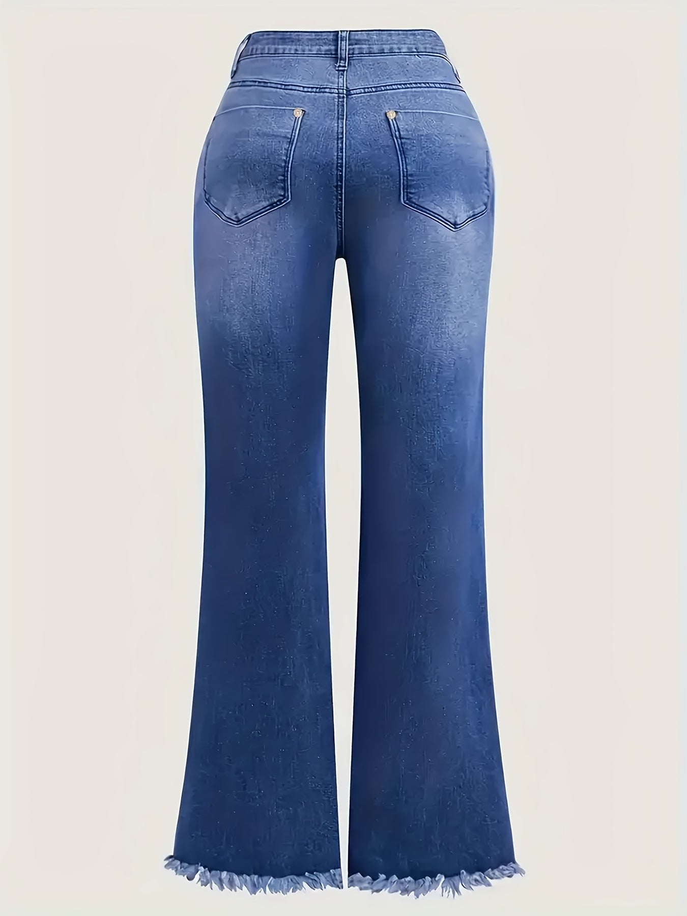 High-Waisted Stretch Flared Jeans with Bohemian Floral Embroidery