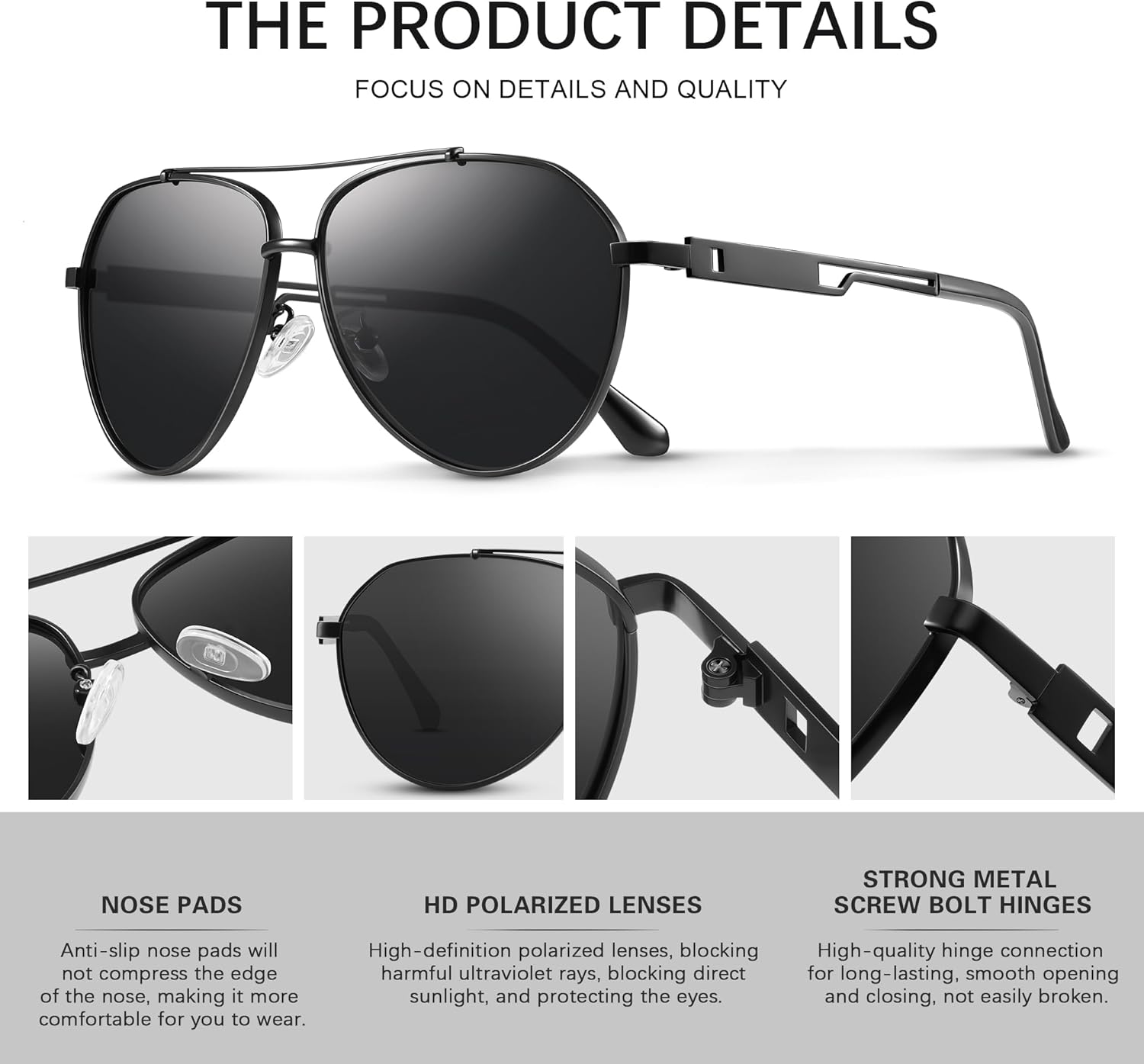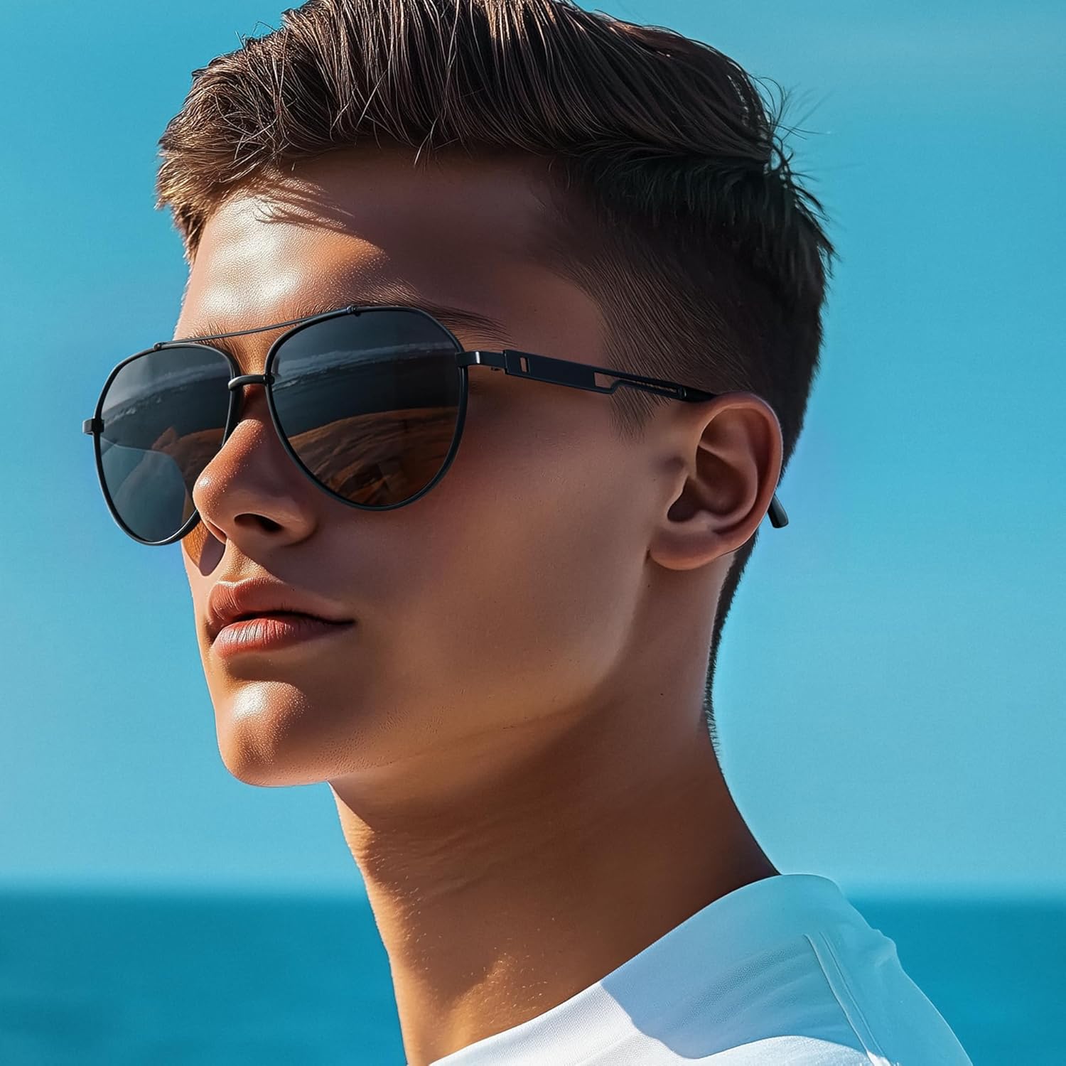 Unisex polarized sunglasses featuring a lightweight metal frame and classic design, offering superior UV400 protection. Perfect for driving, fishing, and all your outdoor activities, these shades combine style and functionality to keep your eyes safe and comfortable.