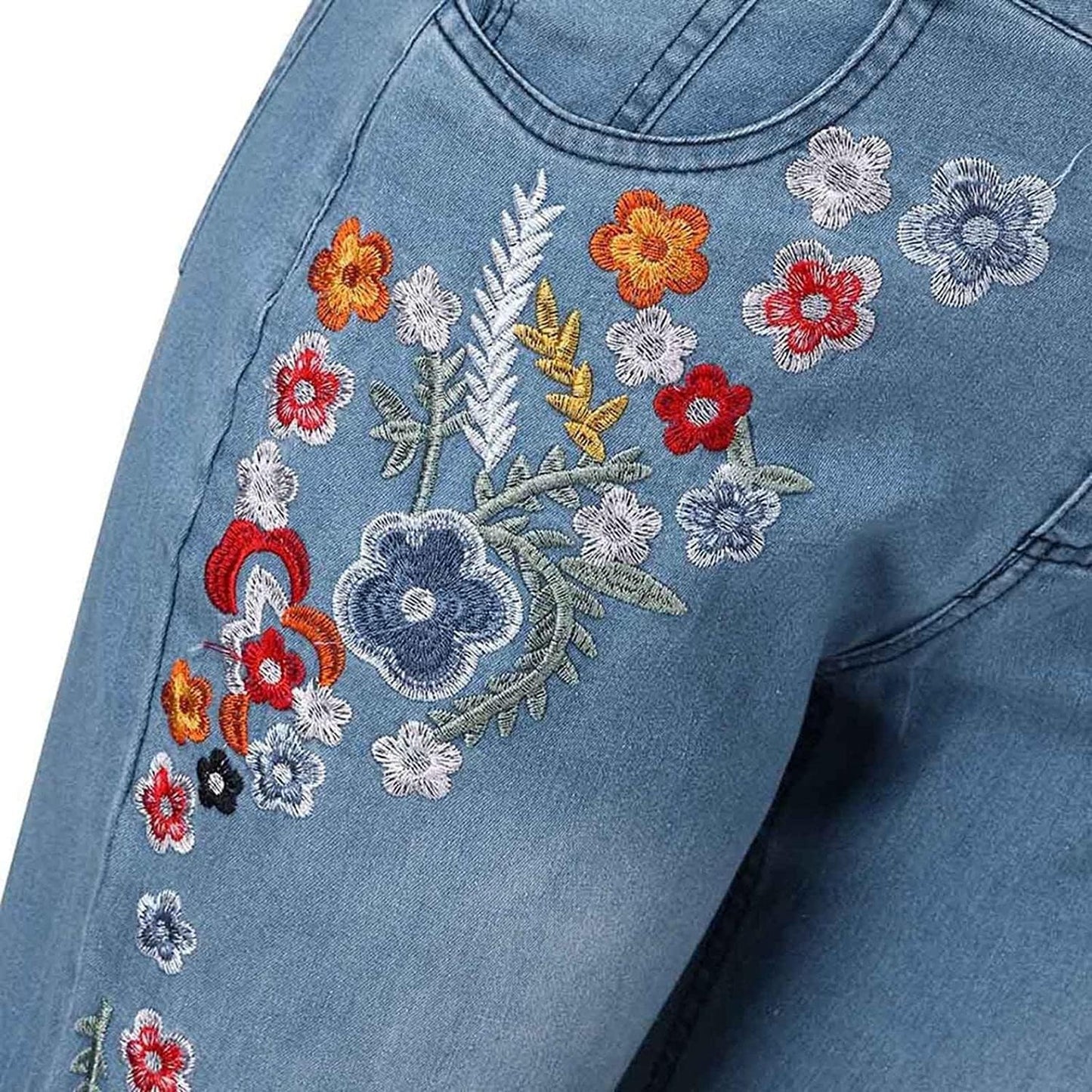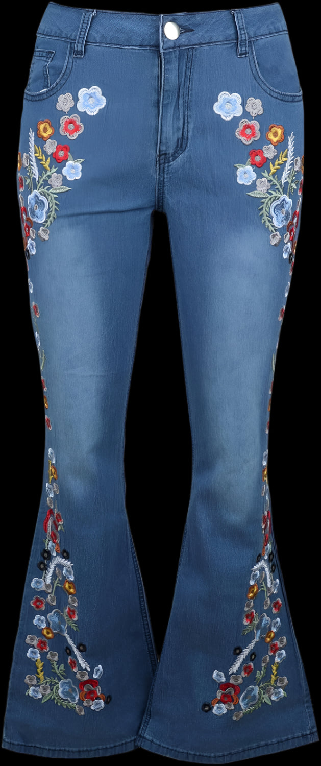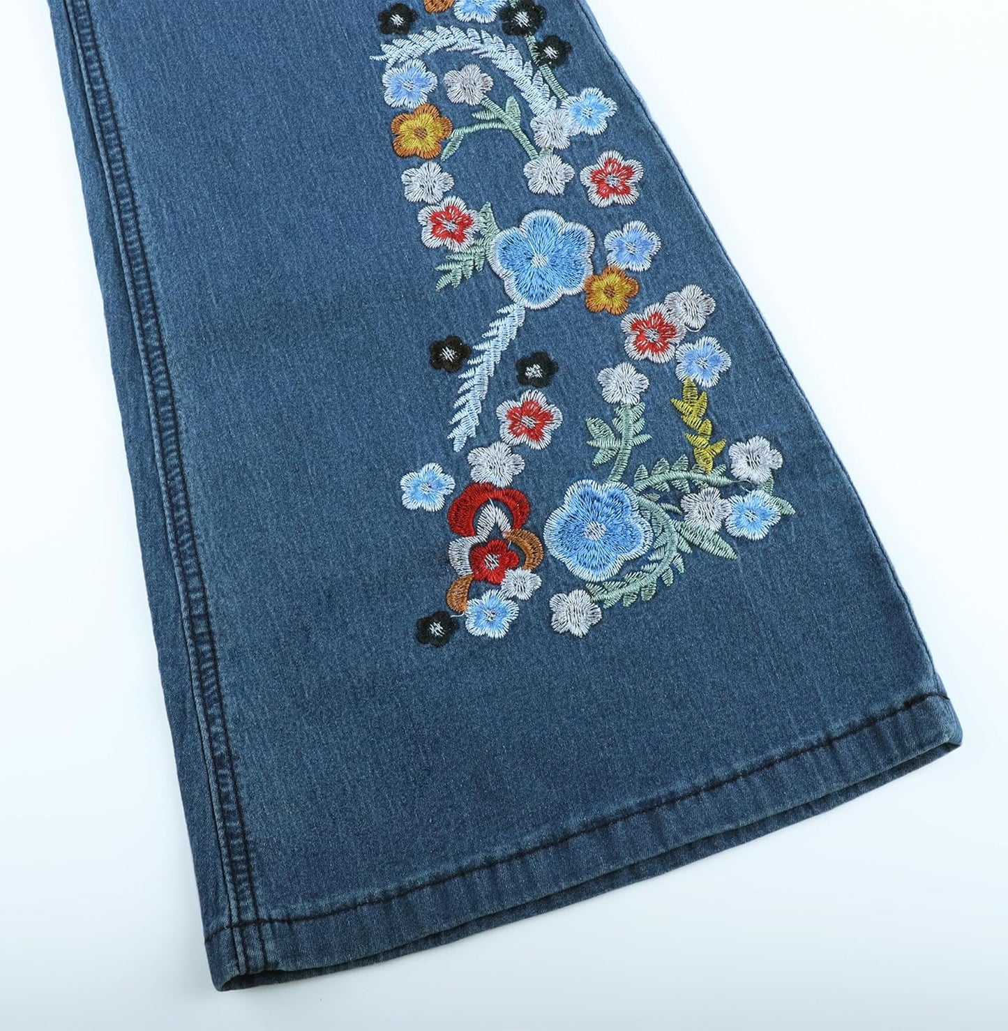 XKBHYD Embroidered Jeans Wide Leg Bell Bottom Denim Pants Vintage Stretch Butt Lifting Washed Jeans