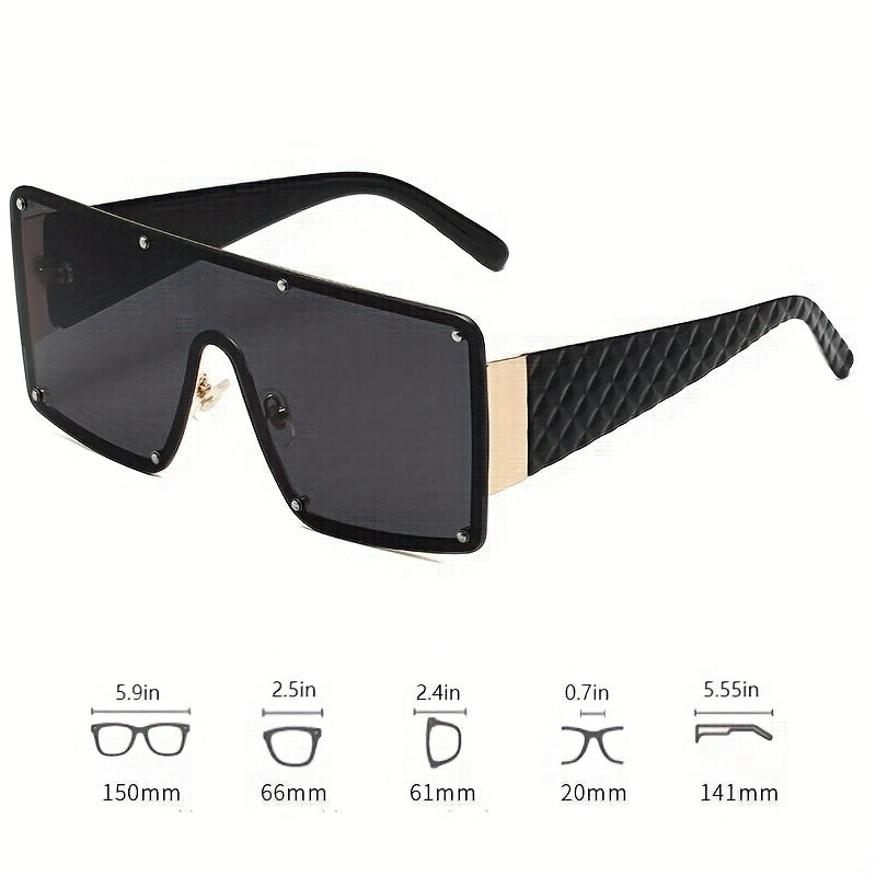 Y2K One-piece Fashion Sunglasses Women Men Large Square Rivet Mirror Lens Glasses For Driving Summer Beach Party Club, UV400