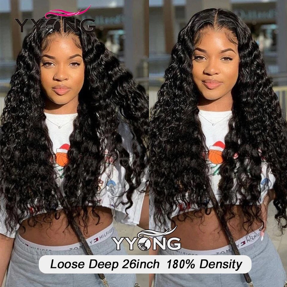 Yyong 30 Inch Loose Deep Wave Frontal Wig 13x6 HD Transparent Lace Front Human Hair Wigs Pre Plucked 5x5 6x6 Closure Wigs