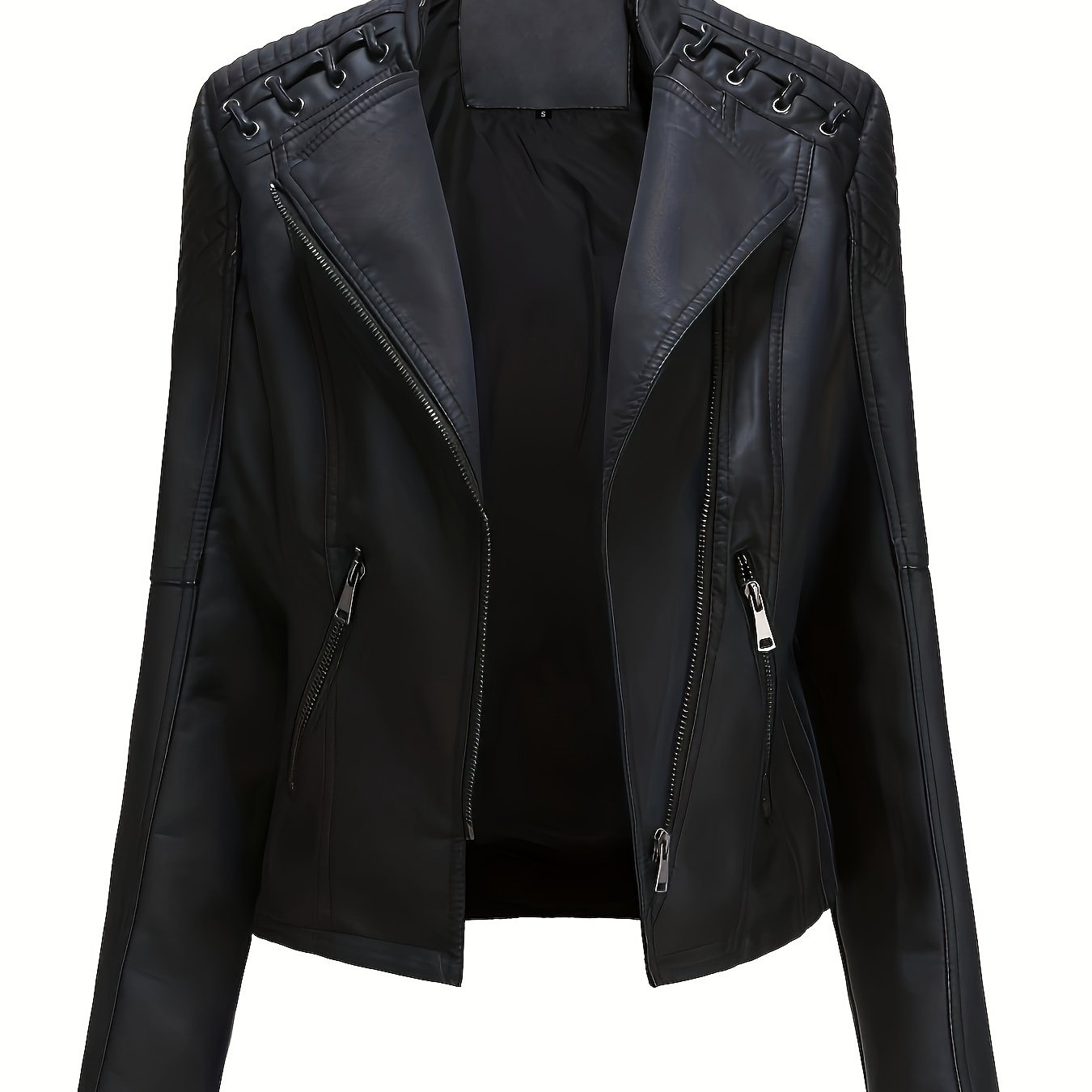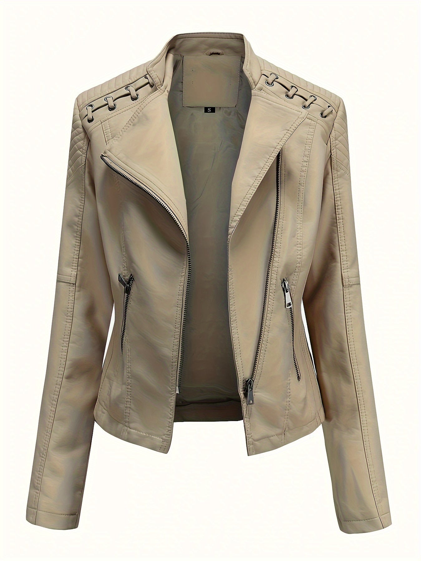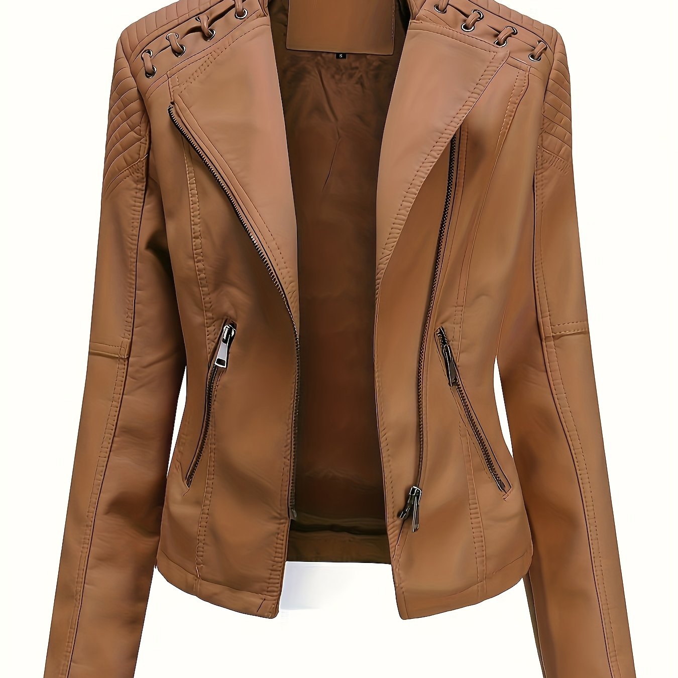 Zipper Faux Leather Jacket, Casual Solid Long Sleeve Outerwear, Women's Clothing
